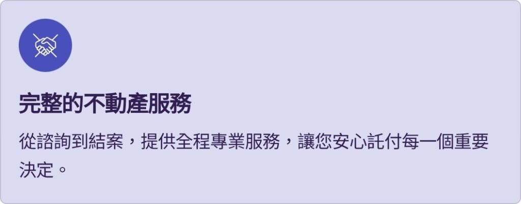 提供全方位的不動產服務,滿足您在各種情境下的需求。
